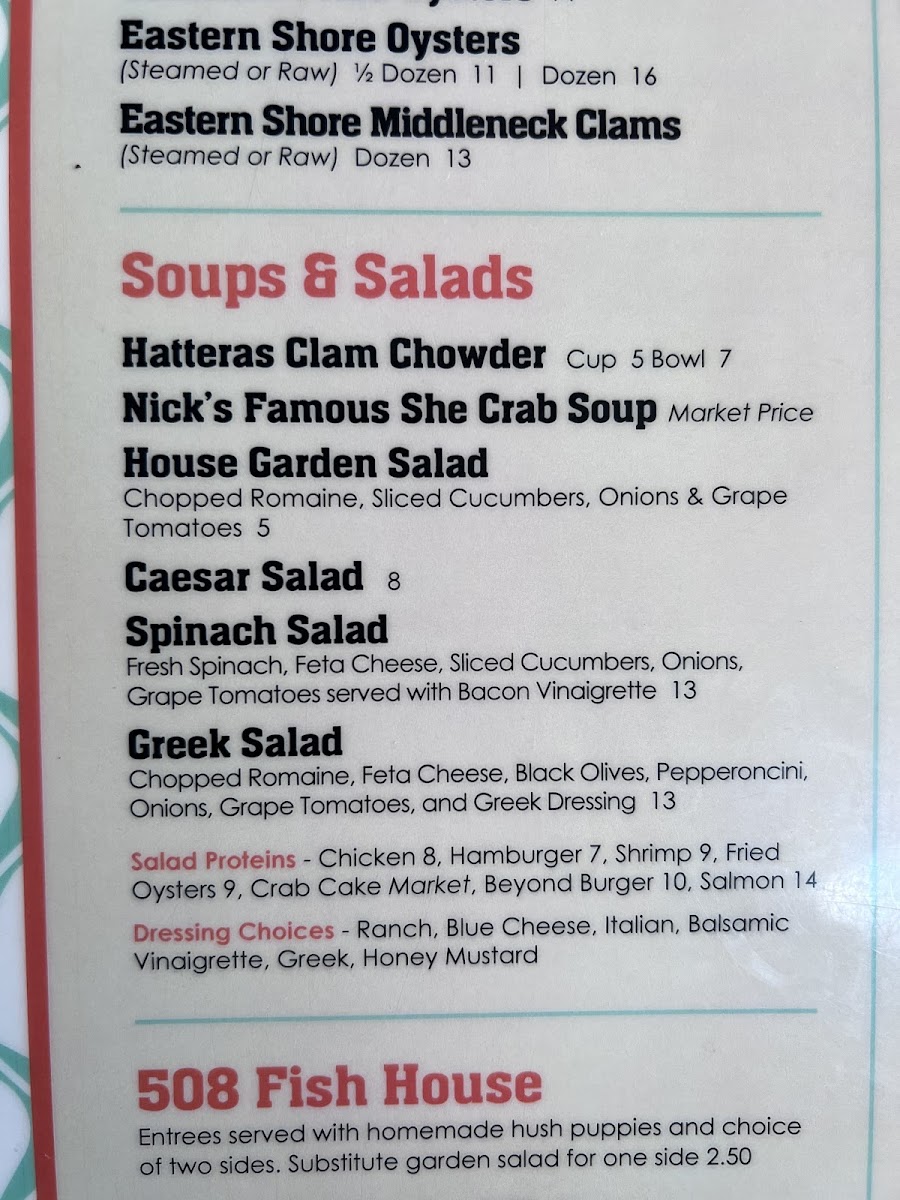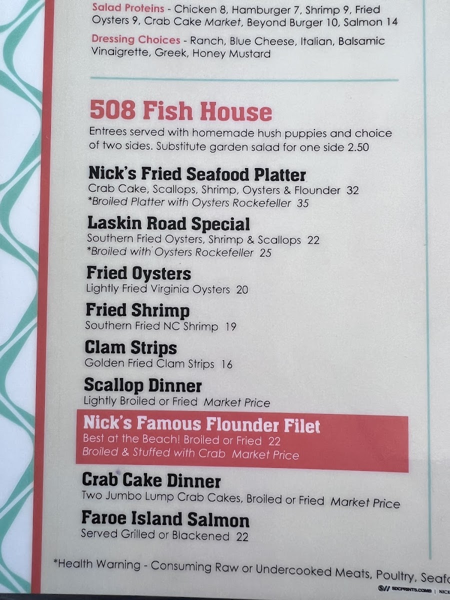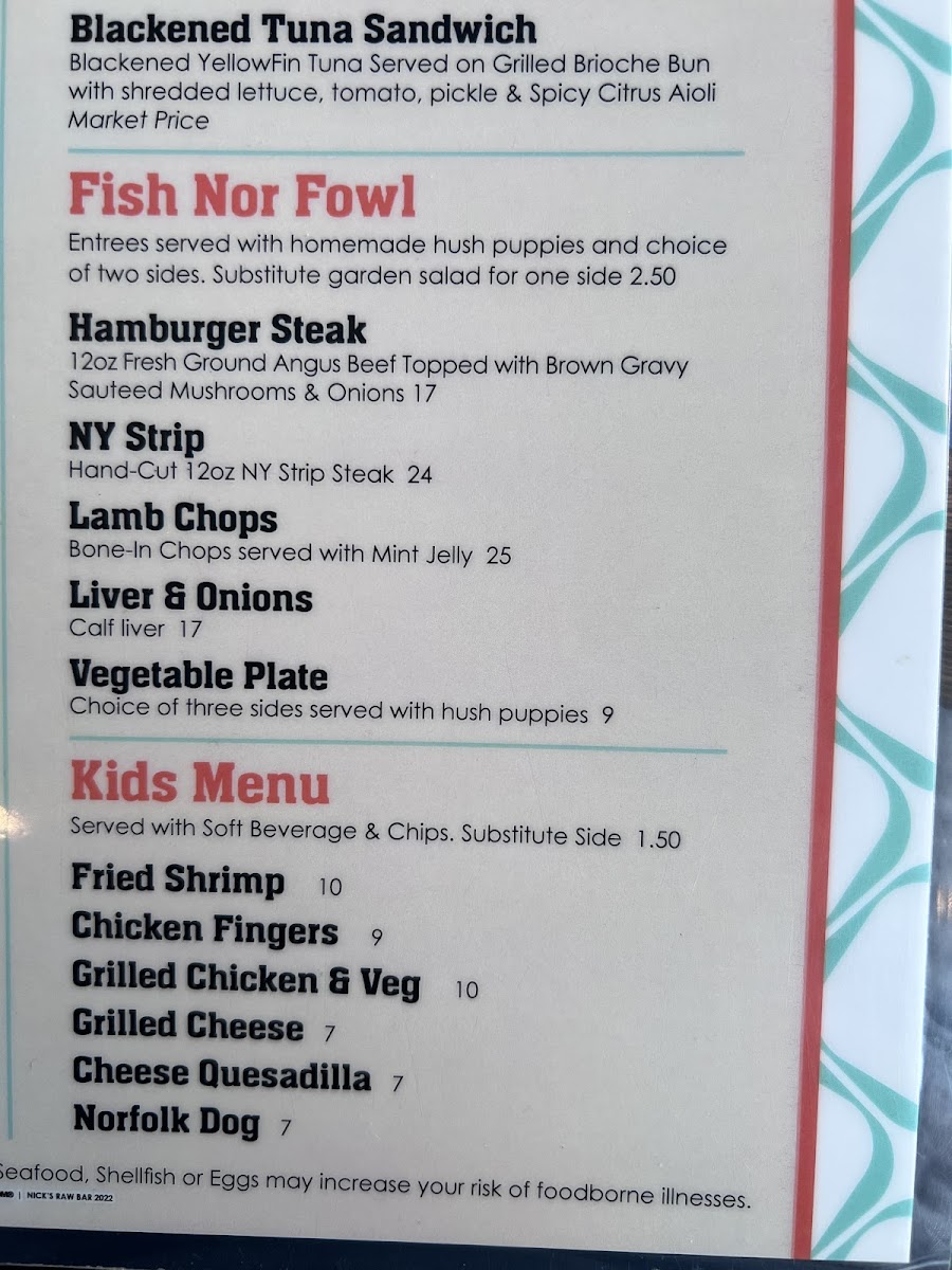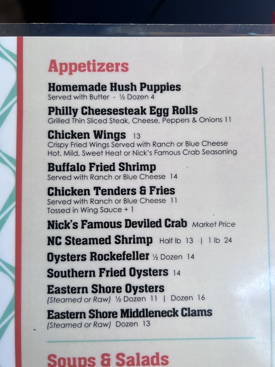 Nicks Bar & Grill Menu